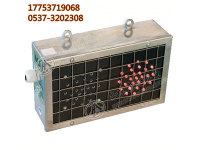 矿用本质安全型声光语音箱外壳为长方形,上方并有悬挂吊鼻。在外壳的有机玻璃板上装有喇叭口和红、绿发光二极管组成的圆形警示灯。