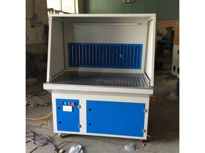 2: 工作原理:烟尘通过风机产生的负压经侧排风口和下排风口进入净化器,经导流板和滤筒过滤后落入集尘抽屉中;含尘气体净化后,经风道、风机排出。打磨除尘工作台带有抽屉式除尘器,日常维护方便。