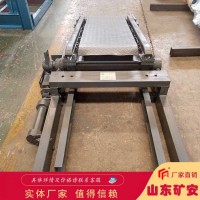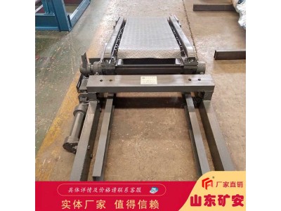 摇台是竖井罐笼提升系统在井口置换罐笼内矿车及人员上下罐时,车场运输轨道与罐笼内轨道衔接的一种承接设备。摇台结构能够满足推车机进罐作业的要求。摇臂与罐笼搭接时,摇尖与罐内导轨衬吻合,保证侧向定位可靠,保证罐内外的基本轨、推车机滑道不错位,使矿车、推车机顺利进出罐笼. kuangan002