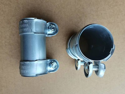 用双管抱箍连接的封头和筒体法兰都具有凸肩,凸肩上斜面的倾斜角度与不锈钢抱箍斜面相同。当上紧时,几个双管抱箍片被牢固地连在一起,依靠配合斜面的作用,使封头和筒体法兰靠拢,从而达到密封。