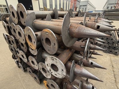 热镀锌光伏地桩的安装施工技巧需贯穿 “前期准备 - 植入操作 - 节点连接” 全环节,前期准备阶段的核心是 “准确适配与防护预处理”。地质条件适配技巧尤为关键:施工前需根据地质勘查报告(明确土壤类型、密实度、地下水位)选择对应植入设备 —— 在松软土壤(如腐殖土、砂质土)中,选择择用电动螺旋钻机(转速 15-30r/min),通过低速旋转减少土壤扰动;在密实土壤(如硬黏土、砾石土)中,需搭配液压辅助装置(提供额外下压力),避免地桩叶片因阻力过大变形。同时,热镀锌层预处理技巧不可忽视:安装前需对桩体表面进行清洁,用软布擦拭掉运输过程中附着的灰尘、油污,若发现局部镀锌层有轻微划痕(<5μm),需及时涂刷锌含量≥90% 的冷镀锌漆进行修补,防止划痕处成为腐蚀起点;对于桩顶连接法兰面,需提前涂抹防锈油脂,避免安装时螺栓紧固导致法兰面镀锌层磨损。植入操作阶段的技巧聚焦 “精度控制与速率提升”。定位准确度技巧方面:采用 “双点校准法”—— 先通过全站仪确定桩位中心点,再在中心点两侧 1m 处设置辅助定位桩,植入时通过设备自带的水平仪与辅助桩对齐,桩位偏差≤±50mm;若场地存在坡度(≤15°),需根据坡度方向调整定位坐标,使地桩轴线与光伏支架安装面保持垂直,避免后期支架倾斜。垂直度控制技巧上:采用 “分段监测法”—— 地桩植入深层每增加 0.5m,暂停植入并通过铅锤仪监测垂直度,若偏差超过 0.5%(如 2m 长地桩偏差>10mm),立即通过反向旋转微调,禁止在超过 1m 后强行校正,防止桩体弯曲或镀锌层剥落。植入速度调节技巧需结合土壤特性:松软土壤中保持 0.8-1m/min 的植入速度,利用叶片快排土;密实土壤中降至 0.3-0.5m/min,通过 “慢转加压” 方式(每旋转 3 圈加压 1 次),减少叶片与土壤的摩擦阻力,避免因速度过快导致电机过载或地桩过热(热镀锌层在温度>120℃时易变色失效)。